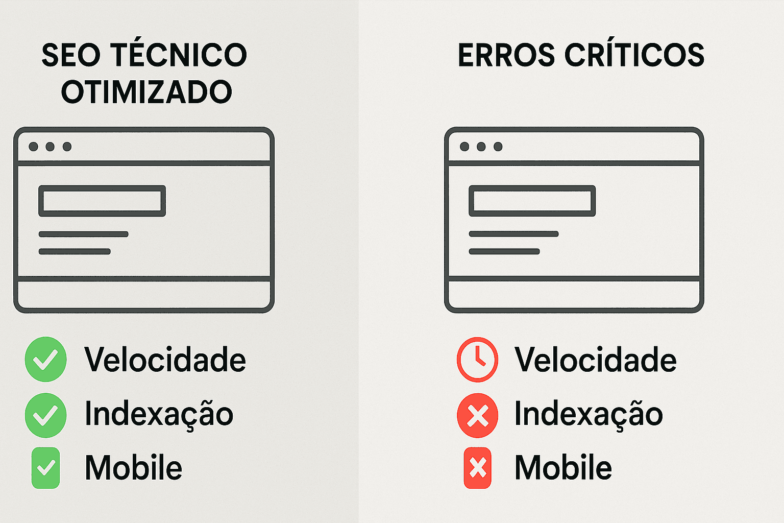 Enquanto o SEO de conteúdo atrai, o SEO técnico garante que o Google consiga rastrear, entender e indexar seu site corretamente. Sem essa base sólida, todo o seu esforço pode ser em vão.